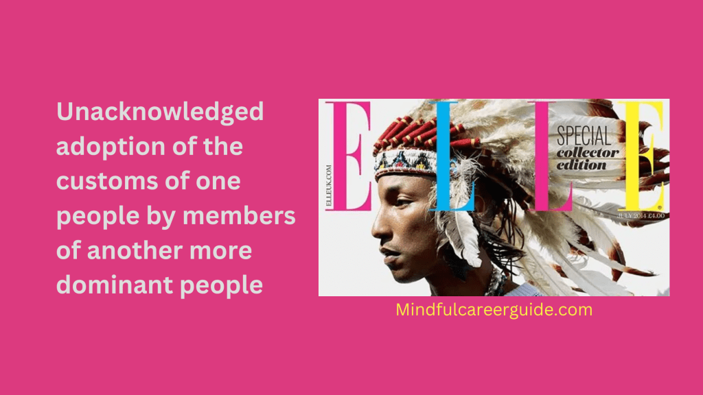 Cultural appropriation is the unacknowledged or inappropriate adoption of the customs, practices, ideas, etc. of one people or society by members of another and typically more dominant people or society.